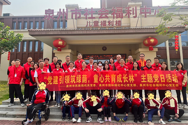 机关党委联合泉州市园林绿化中心党支部、泉州市社会福利中心党支部共同开展“党建引领筑绿荫,童心共育成长林”主题党日活动。