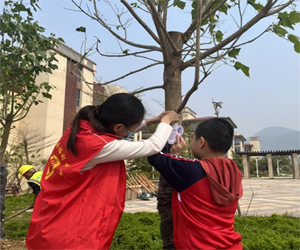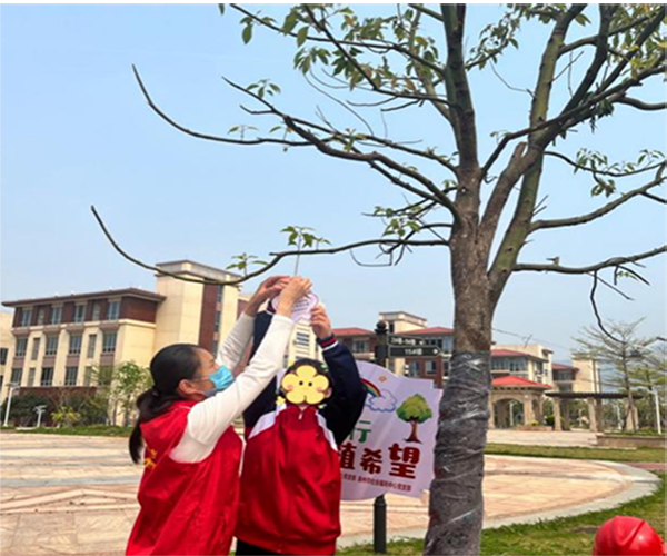 党员们还与孩子们共同为每棵树悬挂标识牌,标注树种名称、捐赠单位及栽种时间等信息,同时写有“一老一小需关爱,一枝一叶总关情”的承诺标语,寓意党员们对“一老一小”群体的长期守护与责任担当,也象征着党和政府、爱心单位对市社会福利中心“一老一小”关爱的永恒见证。