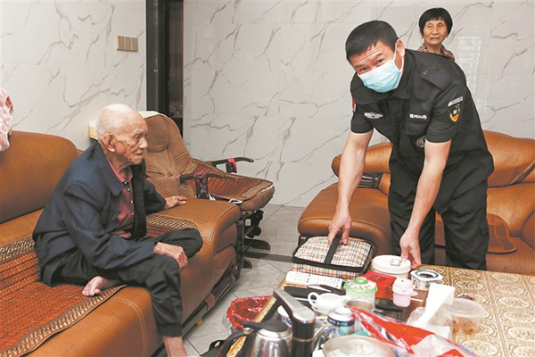 92岁的蔡爷爷和身有残疾的儿子居住塘头嘉园小区。保安每日送餐来,蔡爷爷都会笑着跟他打招呼。蔡爷爷的孙女感激道:“我们有时忙碌可能没法按时给老人家做饭送餐,有了食堂每日送餐,我们轻松了很多,而且食堂的饭菜也有保障,我们都很放心。”